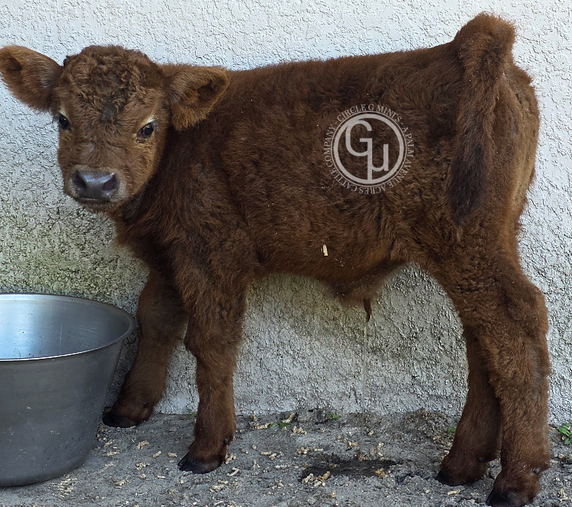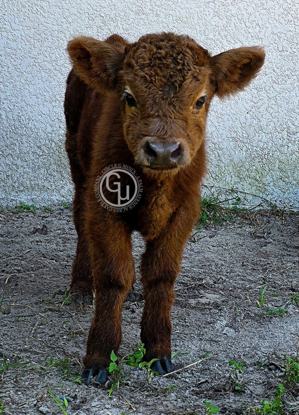 CLG Gaspard is a miniature dun Highland steer calf (AHCA pending) out of AHCA CAM Queenie. He is horned and chondro-negative. From his first days, he’s been handled daily and it shows – Gaspard is exceptionally gentle, trusting, and people-oriented. He loves attention and seeks out scratches more than space. Gaspard is an ideal fit for families and/or small farms wanting a genuinely sweet, well-socialized companion.