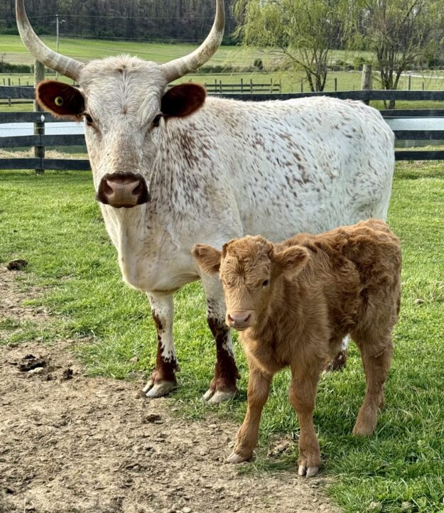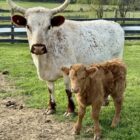 Cow calf pair. 8 year old 47” white park and Highpark bull calf