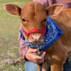 Dobson is the sweetest 3 month old (as of December 1) micro mini western heritage (micro mini dexter x mini zebu) bull calf. He stands all of 24”at the hip on his tippy toes! Dobson is polled. His dad is a micro mini Dexter measuring 35” so he should stay pretty small.