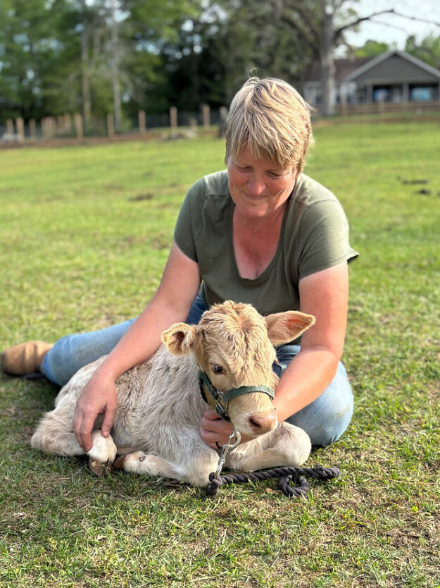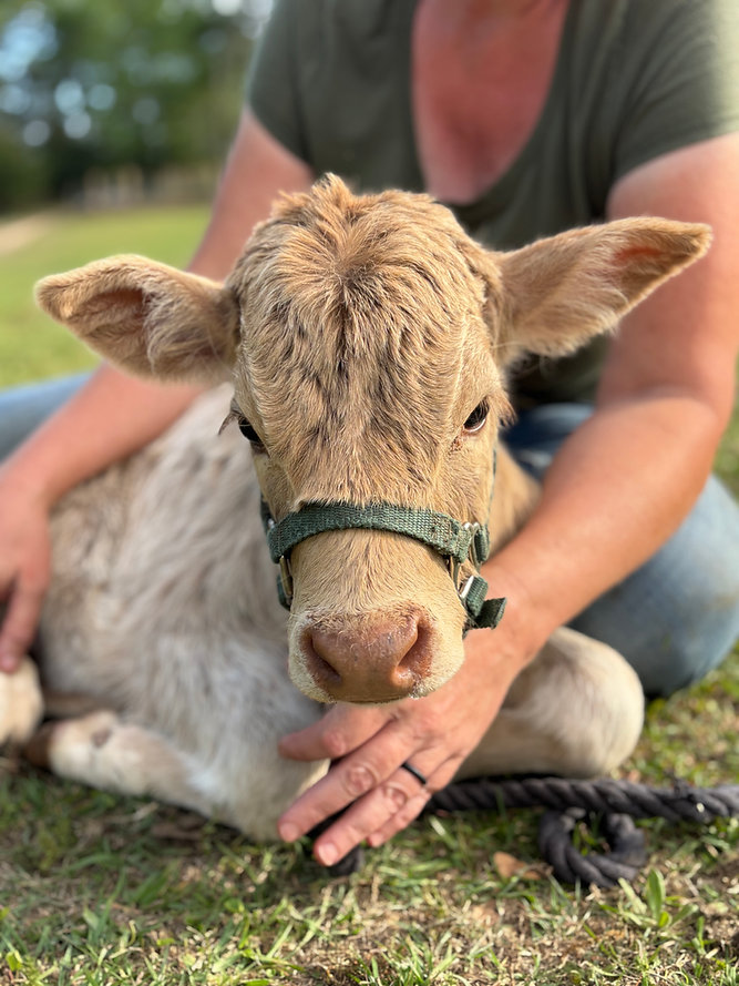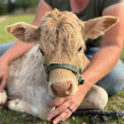 Meet Felix. Felix is a mini zebu x highland bull calf. He was born March 6 and is on two bottles a day. Felix combines the small statue and hardiness of the zebu with the fluff of the highland. He will have horns. Both of his parents are under 42” at the hip. He is learning to walk on a halter and lead.