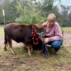 Hattie takes one bottle a day and is drinking them with gusto. She is also eating grain and hay. She walks on a halter and lead (video available).