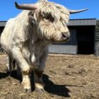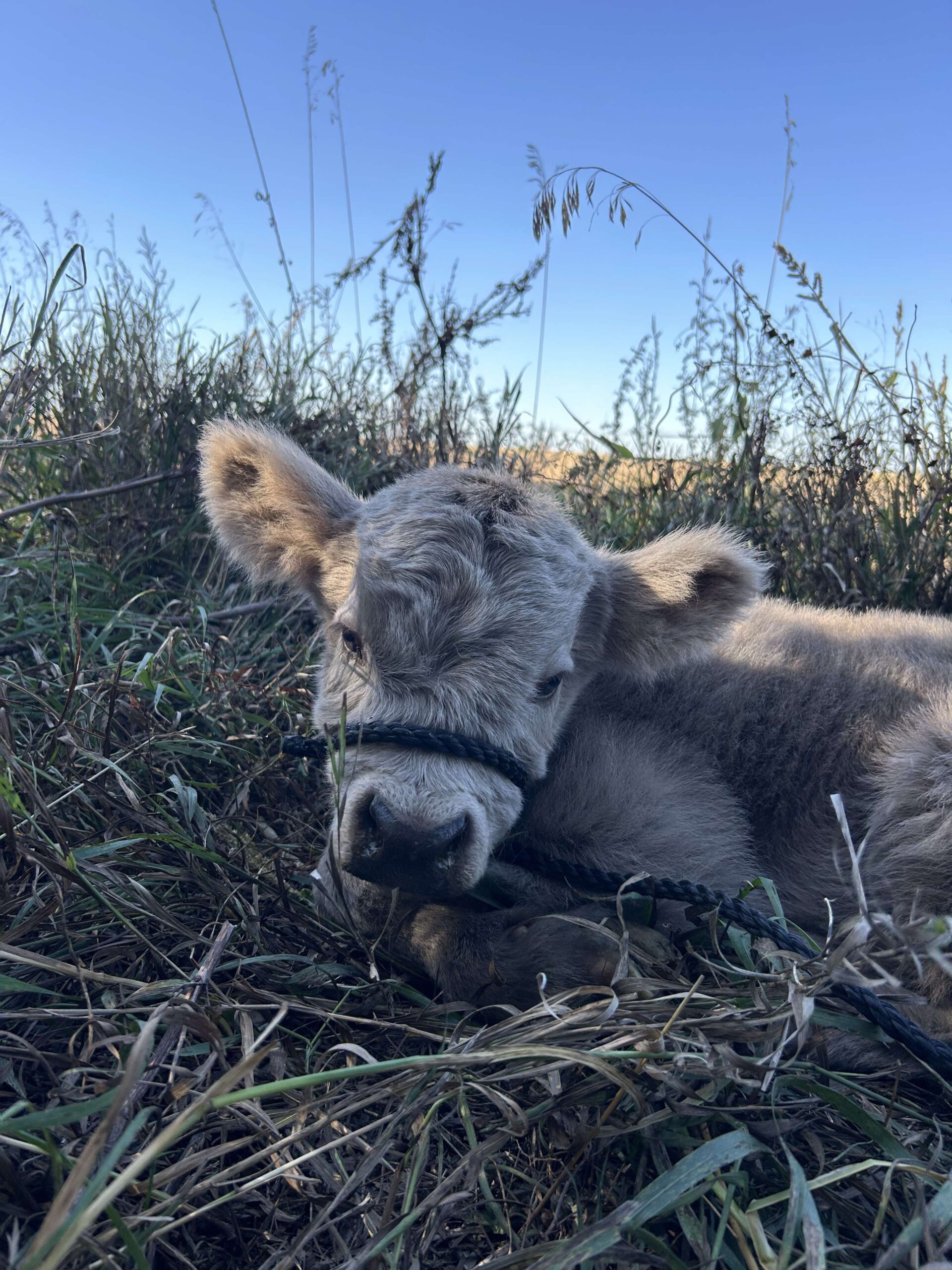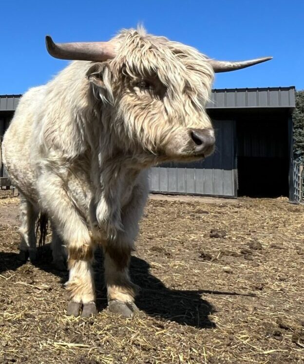 Kodiak is a great-looking 3-year-old silver highland bull. He has produced silver calves, which are also shown in the photos. Kodiak loves treats, being combed, and really likes attention. Kodiak is definitely a character when it comes to making people laugh, especially when he is playing with the water in the stock tank. If you would like to talk more about Kodiak, please give me a call at 402-641-9621.