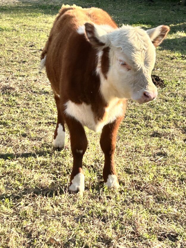 Waffles is a 5 month old bull calf, eating hay/grain. Laid back, will eat treats out of your hand. Not halter broke.