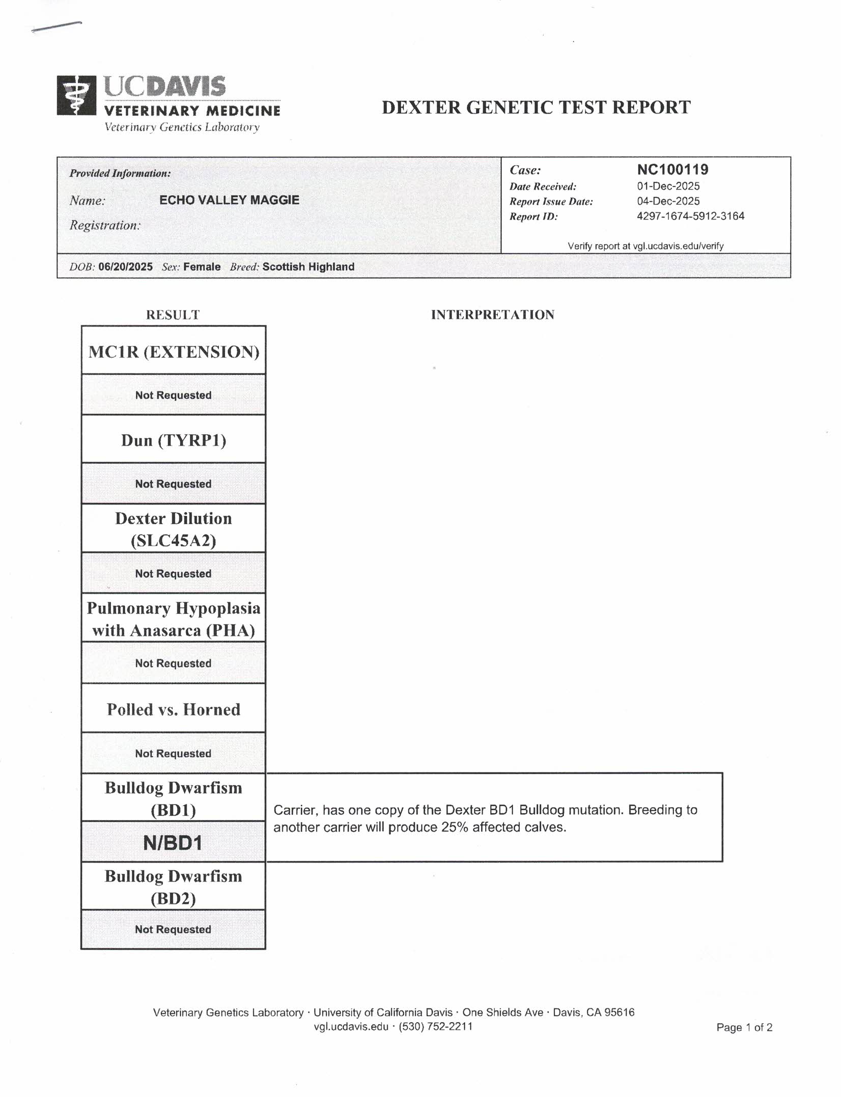- Sire: Lakeport Gunnison – 94% Scottish Highland, 6% Dexter, Chondro Positive, Pictured