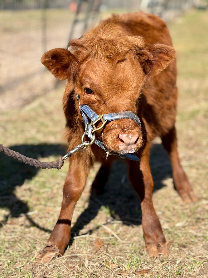 Meet Oscar! Oscar is a HiDex bull calf. Mom is a midsize Highland, dad is a very handsome Dexter. He was born September 13 and stands 28” tall. He will be 4 momths old on January 3. He has the cutest mop of curly hair ontop of his head! It cowlicks in all directions 😂 for those wanting the highland look he does have horns.