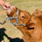 He is as handsome as he is sweet. He loves his bottles, enjoys being loved on and is doing pretty good walking on a halter