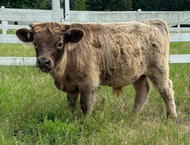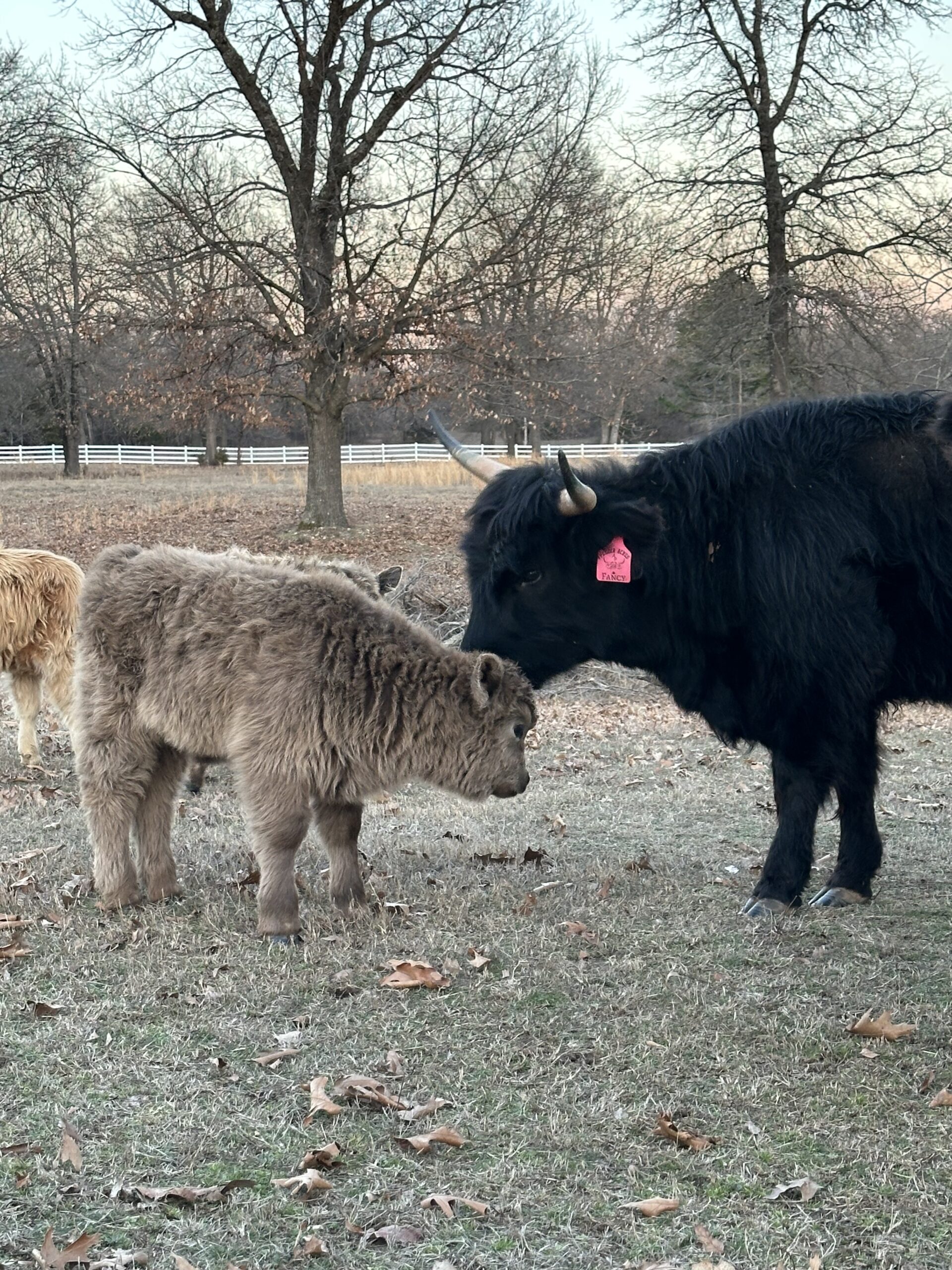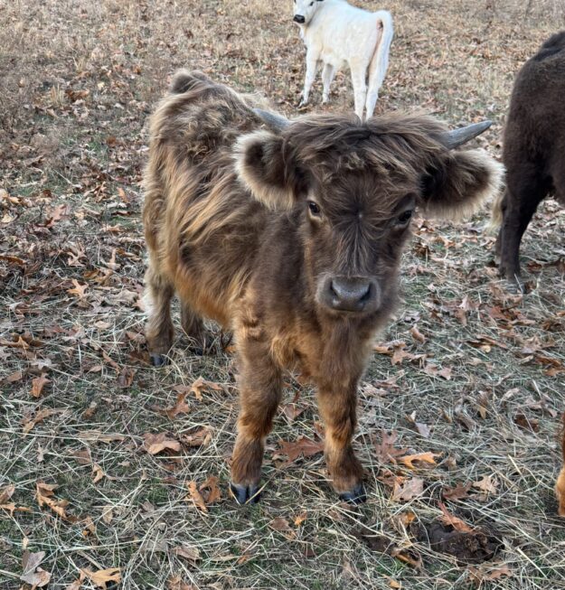 Max DOB 1/10/2025 is a chondro Negative bull. Dun in color his Dam is a 44″ black Highland. Sire is a Silver 44″ bull. Photos of dam and sire for reference. Max loves to be brushed and eating treats out of your hand. Max is looking for his own herd and will make a great addition to any herd. Located near Locust Grove, Oklahoma. Pickup in person or we can help arrange shipping at buyers’ expense. 918-230-3651