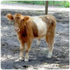 His dam is Beltina, a miniature Belted Galloway with only 40 inches at the top of the hip and naturally polled.